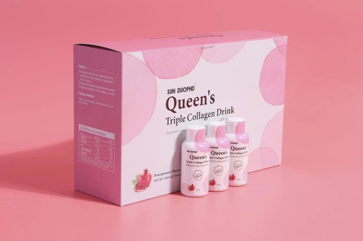 朵博士女王三重深海鱼胶原蛋白肽,选用法国进口深海鱼胶原蛋白肽,每50ml含胶原蛋白肽8000mg,分子量极低,能有效被身体吸收,补充胶原蛋白。