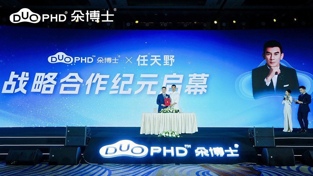 盛典的重头戏,明星环节瞬间点燃全场。往届明星代言人乔婷、徐百慧通过视频优雅亮相,温情回顾与朵博士相伴的岁月,为品牌的专业与亲和力倾情背书。在万众期待中,新任明星代言人实力派演员任天野重磅登场。作为硬汉形象的典范,任天野身上坚韧、专业与责任感,与朵博士追求卓越的品牌精神高度契合。现场,双方举行庄重的签约仪式,并与全场参会人员一同大合影。这一环节不仅标志着品牌形象的全新升级,更寓意着朵博士将以更强大的影响力,携手合作伙伴,向新的高峰并肩攀登。