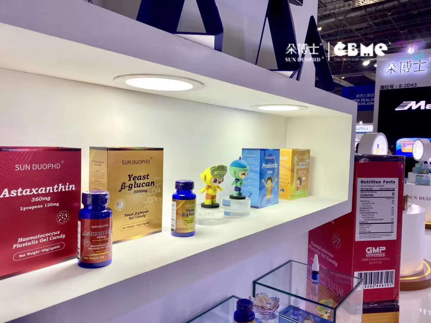朵博士展示了旗下的主打产品,其中有几款产品格外受到关注。这几款产品分别是雨生红球藻虾青素、免能燕窝酸酵母β-葡聚糖、女王三重深海鱼胶原蛋白肽、125DHA以及畅敏舒益生菌。